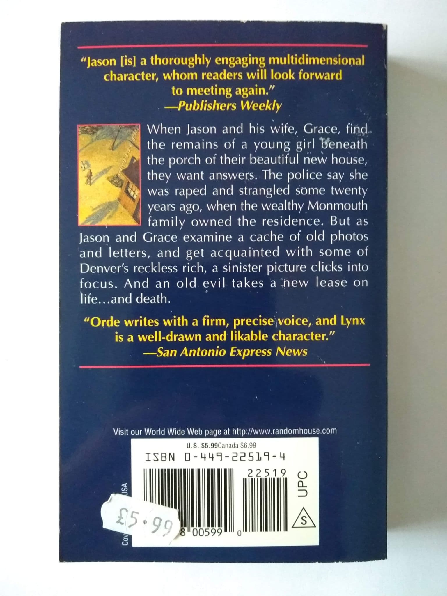 CONDITION GOOD, PRICE STICKER ON BACK COVERAUTHOR BY A J ORDECATEGORY MYSTERYPUBLICATION FAWCETT CRES. 1ST EDITION 1997 ISBN NO: 0-449-22519-4SYNOPSIS SEE PHOTOS