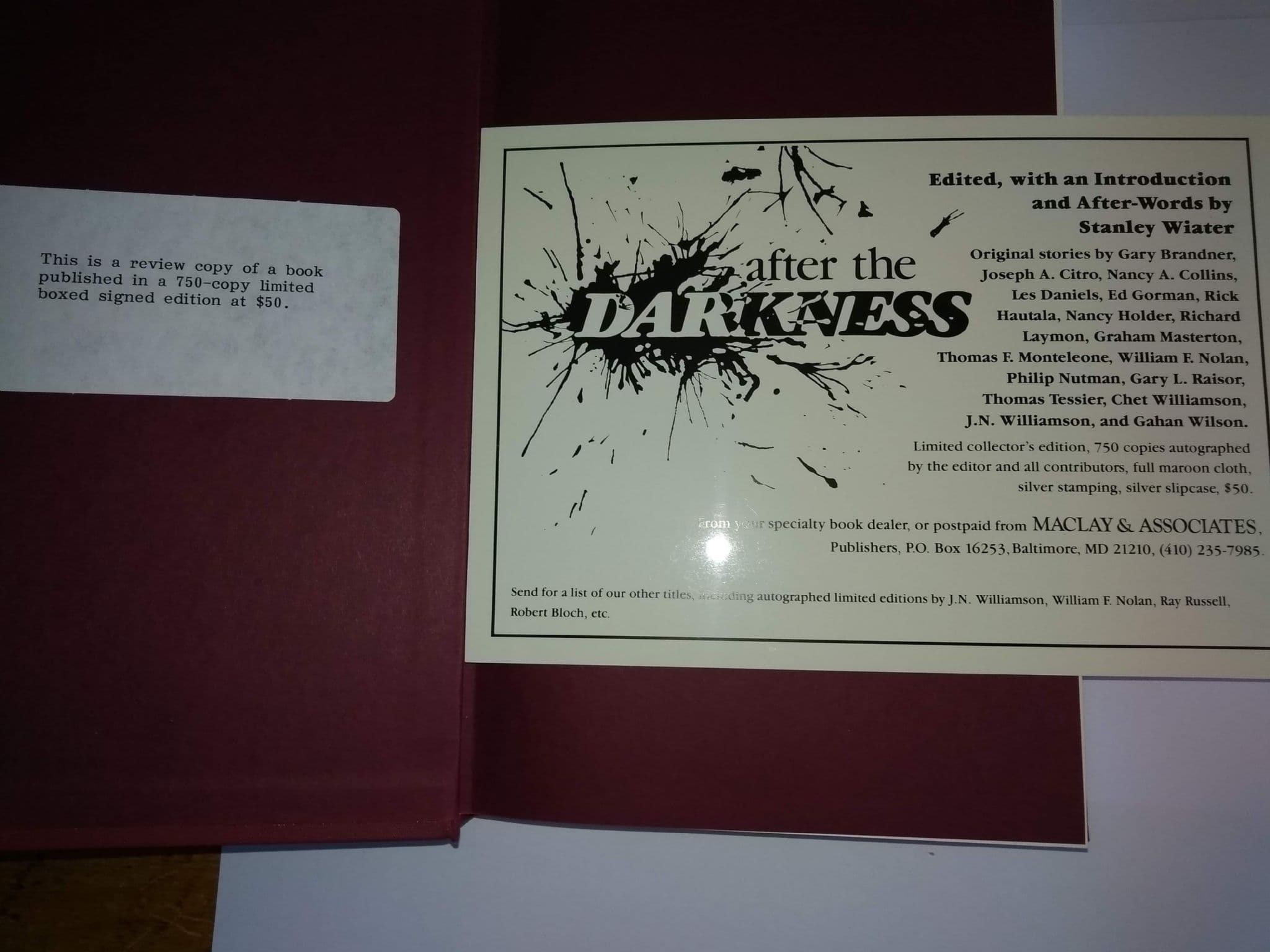 After the Darkness (Hardcover) edited by Stanley Wiater (Review Copy)