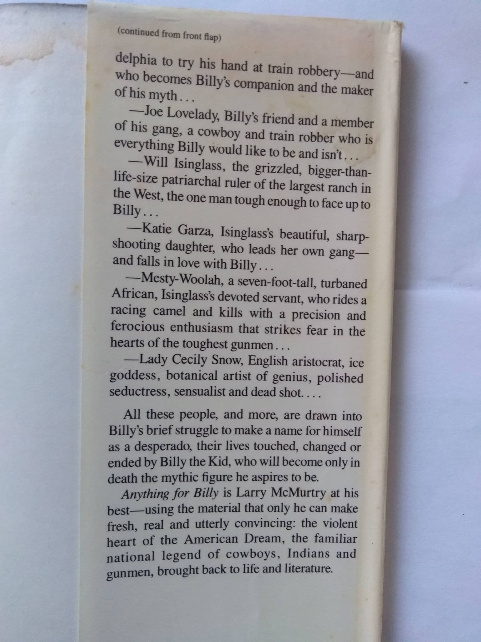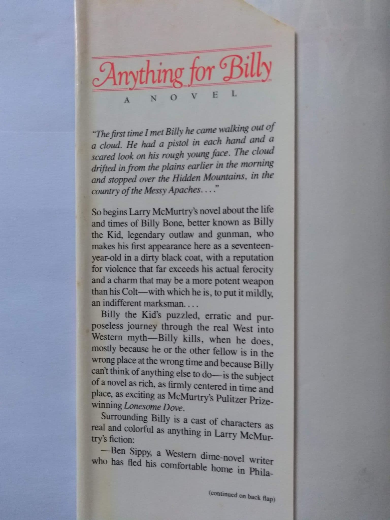 ANYTHING FOR BILLY by Larry McMurtry (Hardcover)