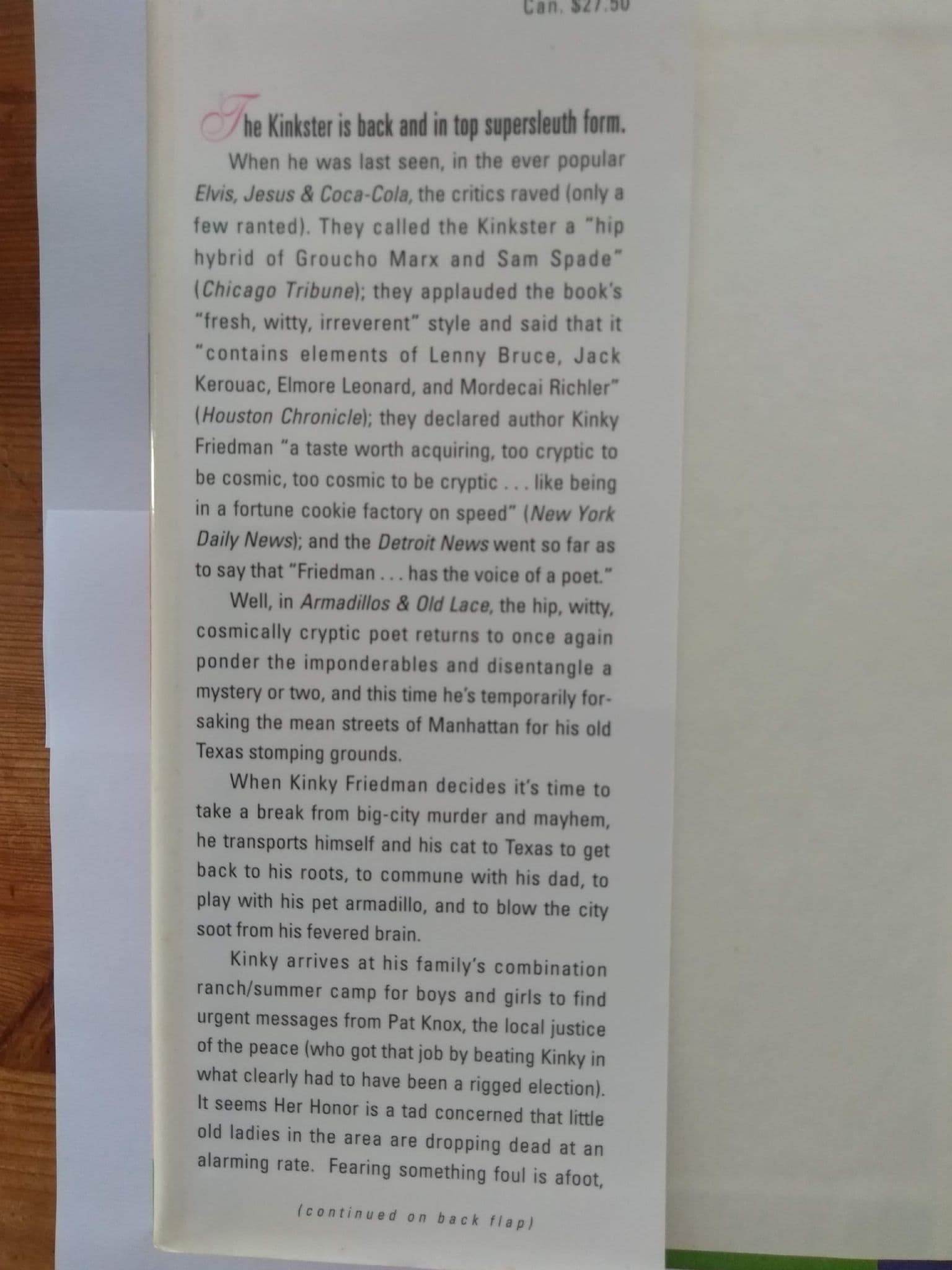 CONDITION GOODAUTHOR KINKY FRIEDMANCATEGORY CRIMEPUBLICATION SIMON & SCHUSTER 1ST EDITION 1994ISBN NO 0-671-86923-XSYNOPSIS SEE PHOTOS