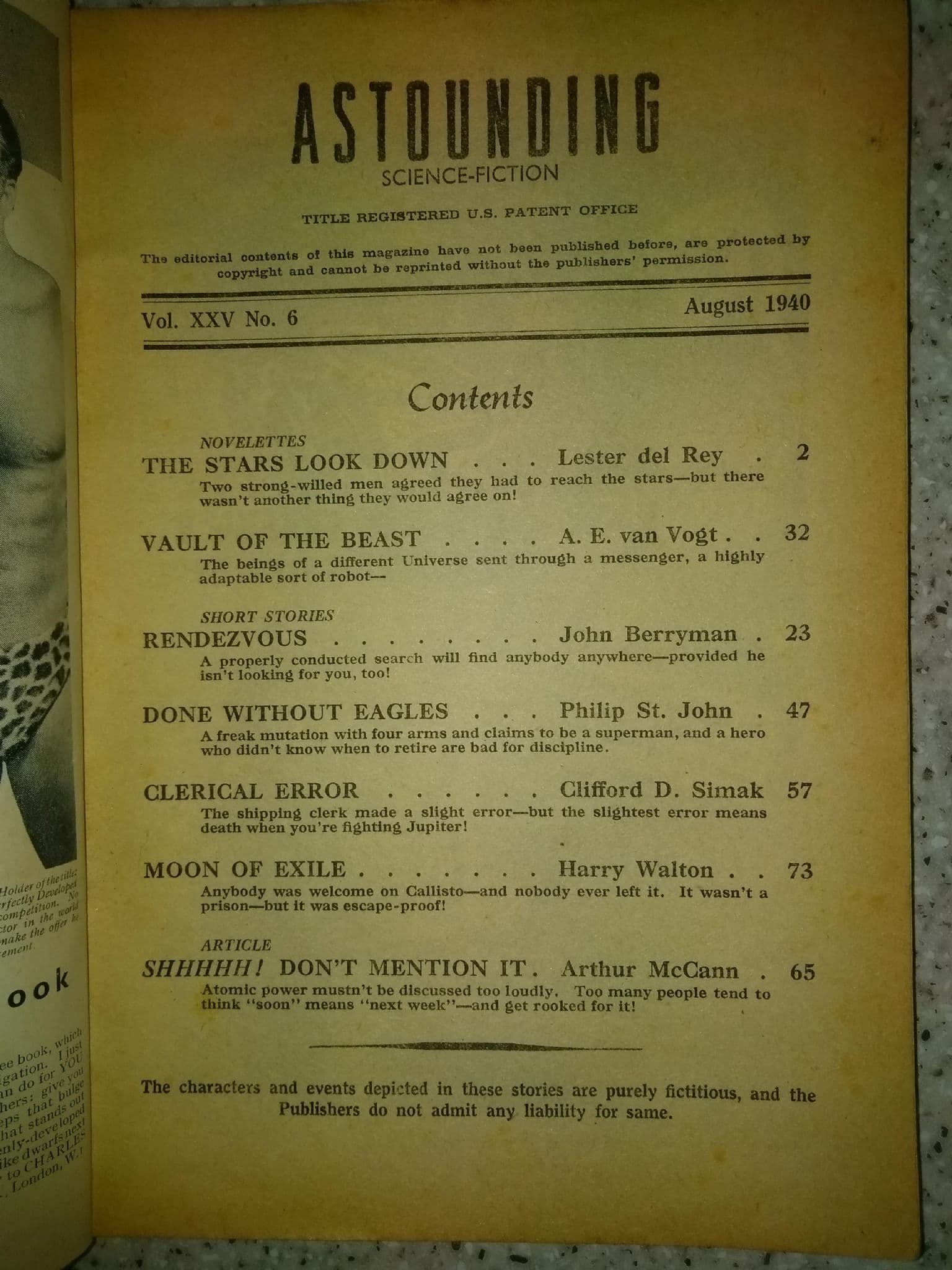 ASTOUNDING Science Fiction (British Edition) August 1940 Vol 25 No 6.