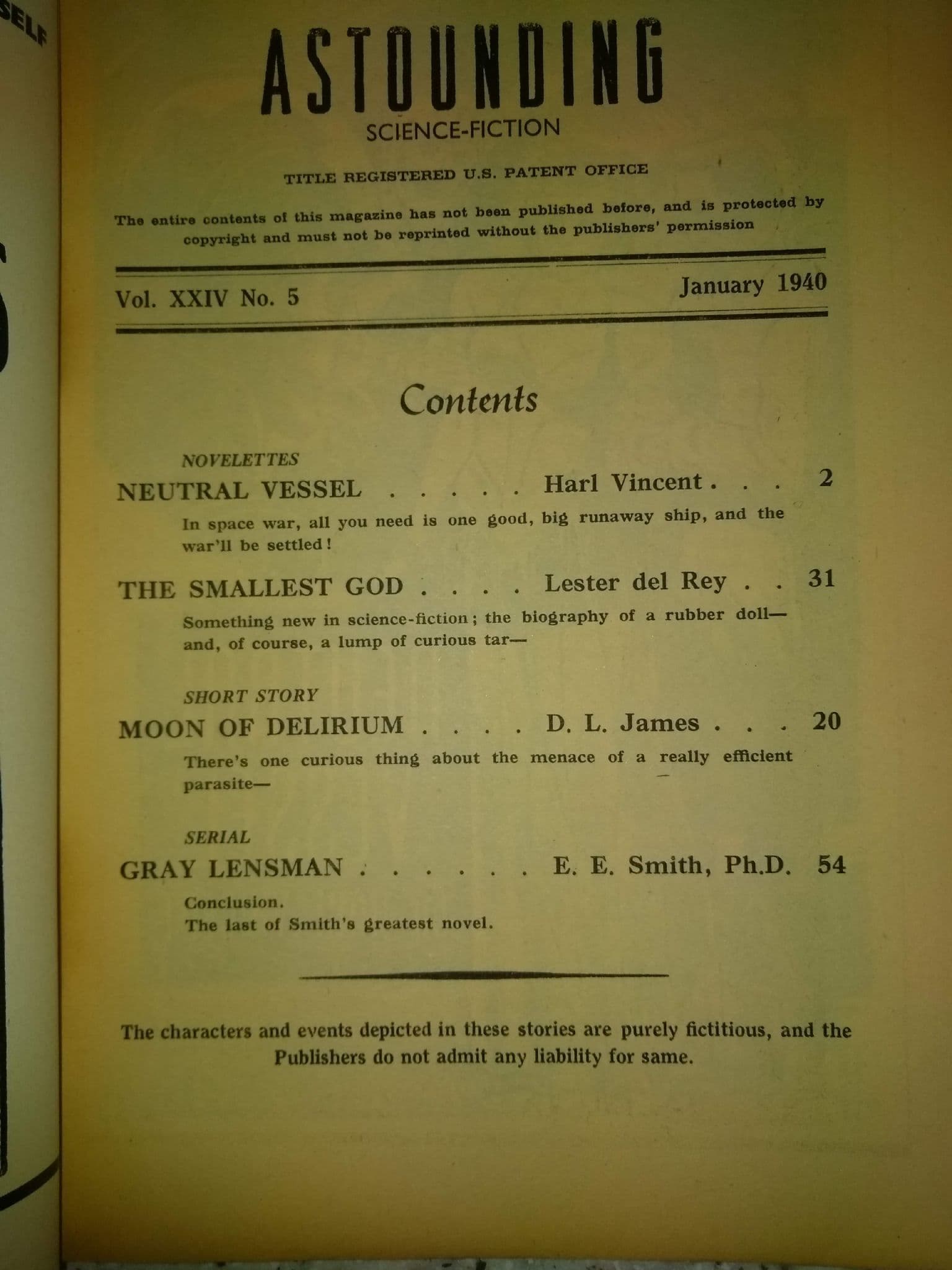 ASTOUNDING Science Fiction (British Edition) Jan 1940 Vol 24 No 5.