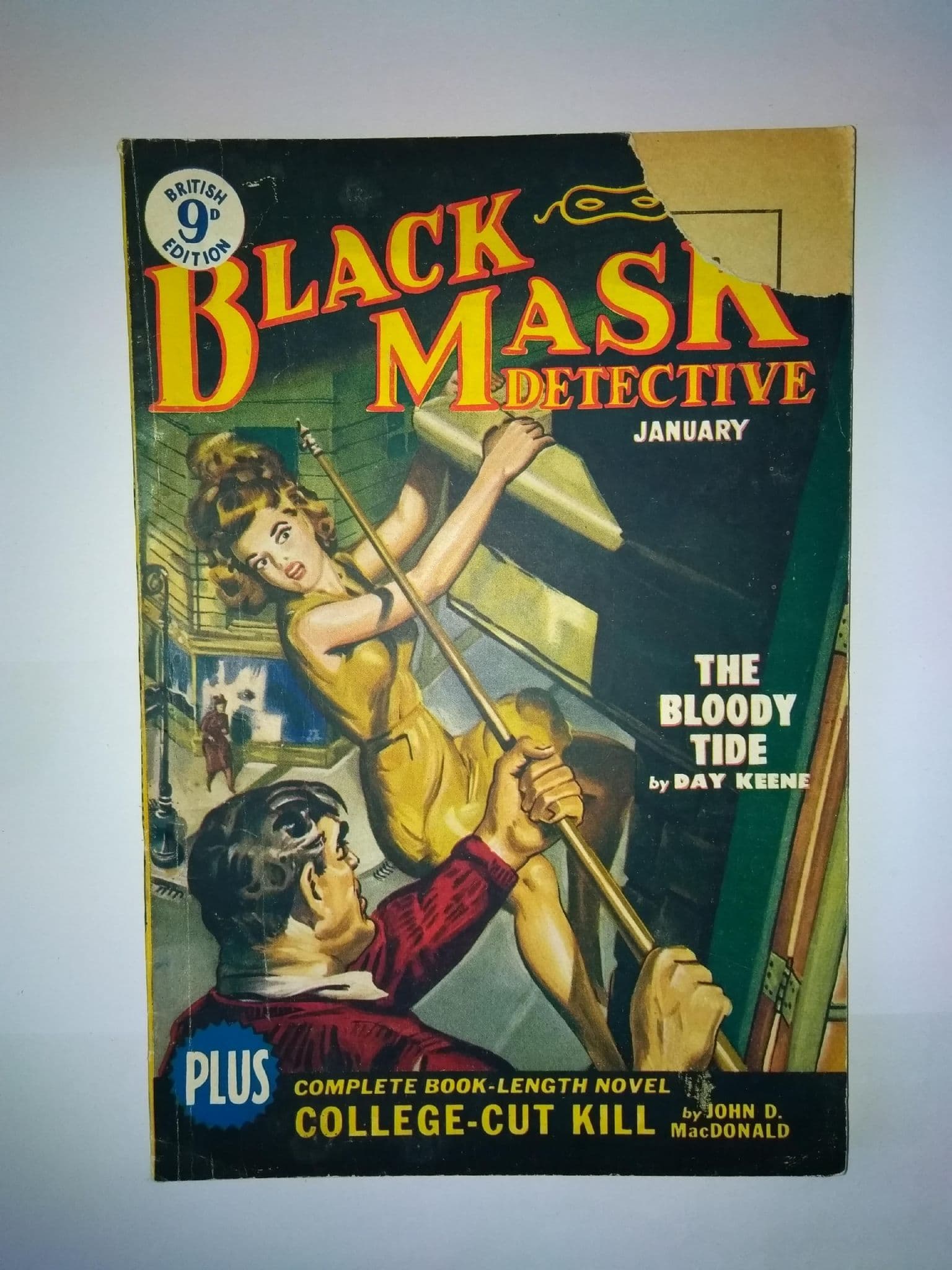 Black Mask was a pulp magazine first published in 1920 by H L Mencken & George J Nathan. Various editors ran the magazine over the years & Philip C Cody was in charge when the content became more sensationalist. Stories were more intricately plotted & strewn with more blood, guts, gore & sex. Stories published by some big names include Dashiell Hammett, Raymond Chandler, Erle Stanley Gardner & George Harmon Coxe..