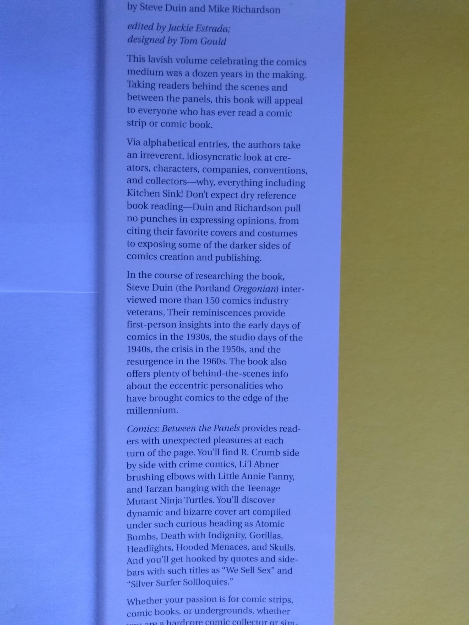 COMIC'S BETWEEN THE PANELS by Steve Duin & Mike Richardson (Hardcover)