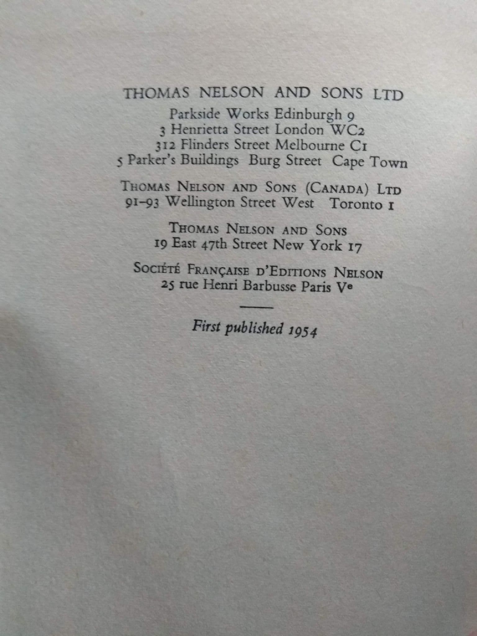 PUBLISHER A THOMAS NELSON & SONS PUBLICATION 1954