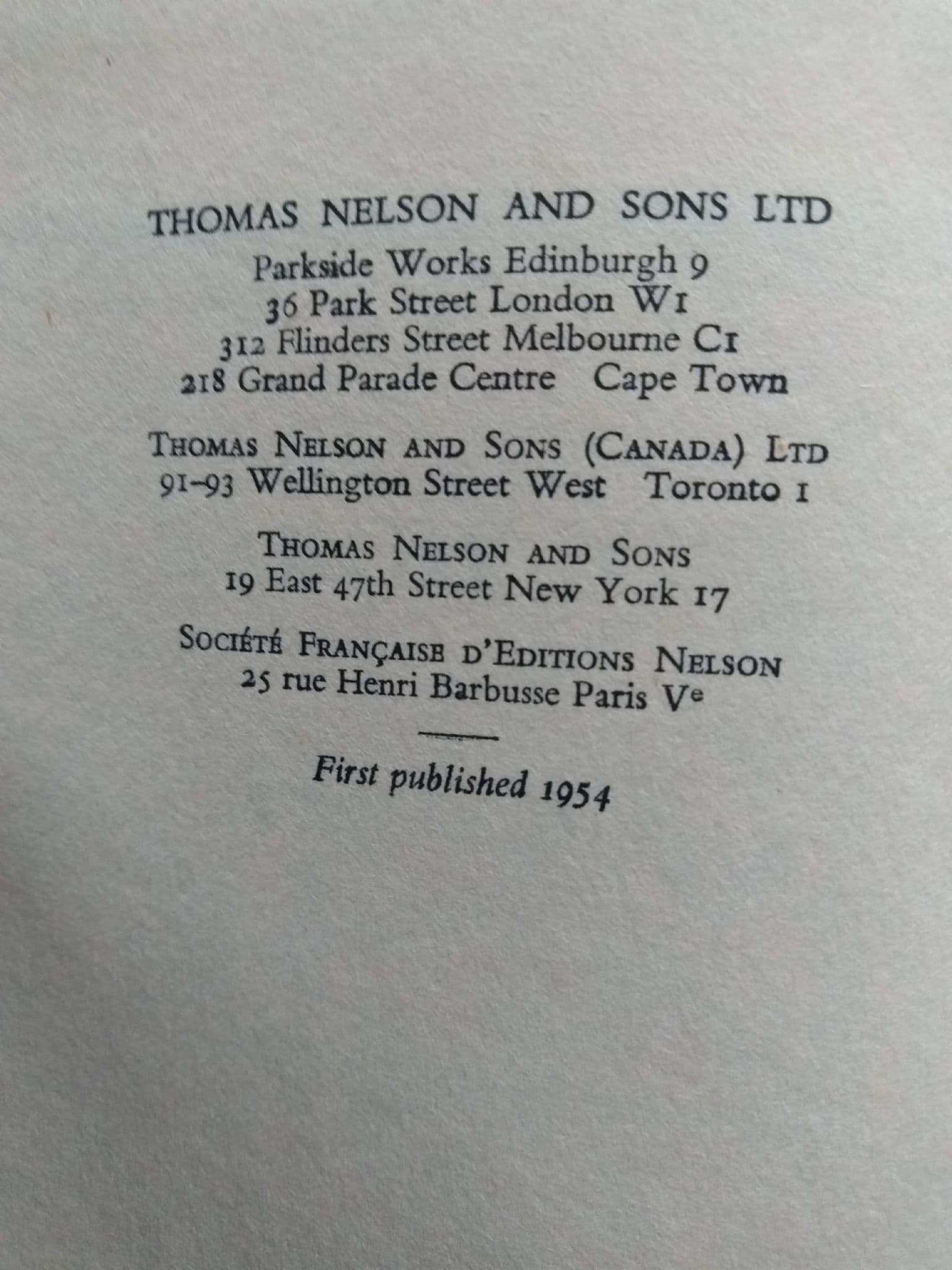 PUBLISHER A THOMAS NELSON & SONS PUBLICATION 1954