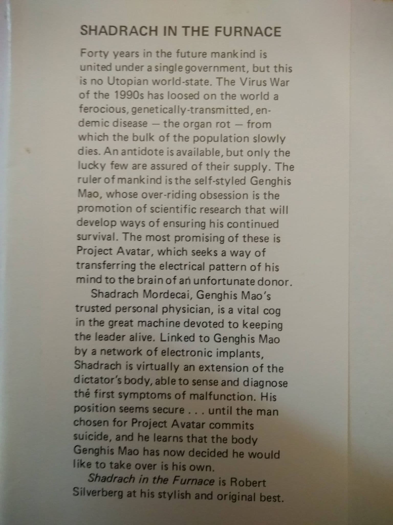 READERS UNION: SHADRACH IN THE FURNACE by Robert Silverberg (Hardcover)