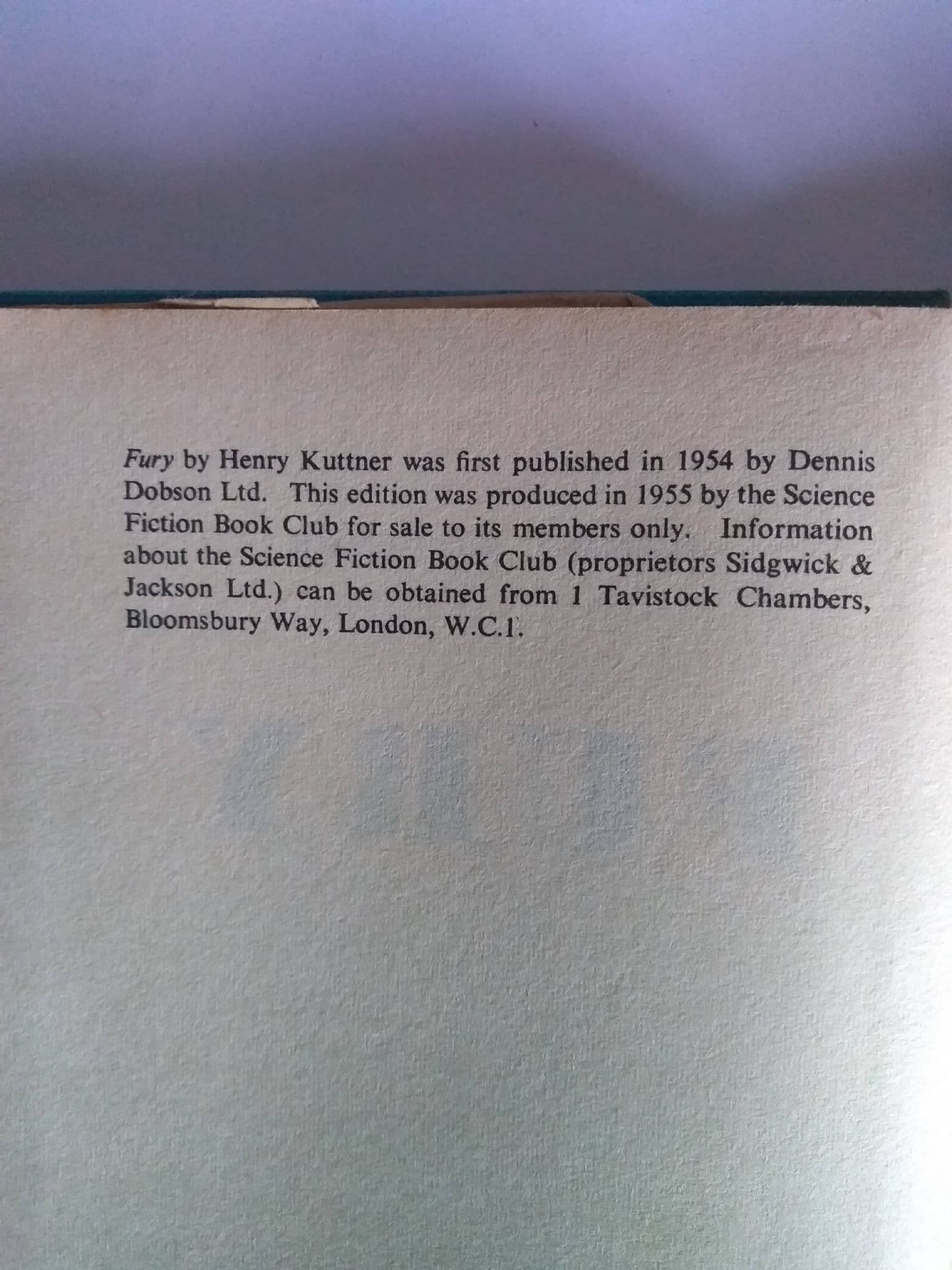SFBC : FURY by Henry KUTTNER (Hardcover)