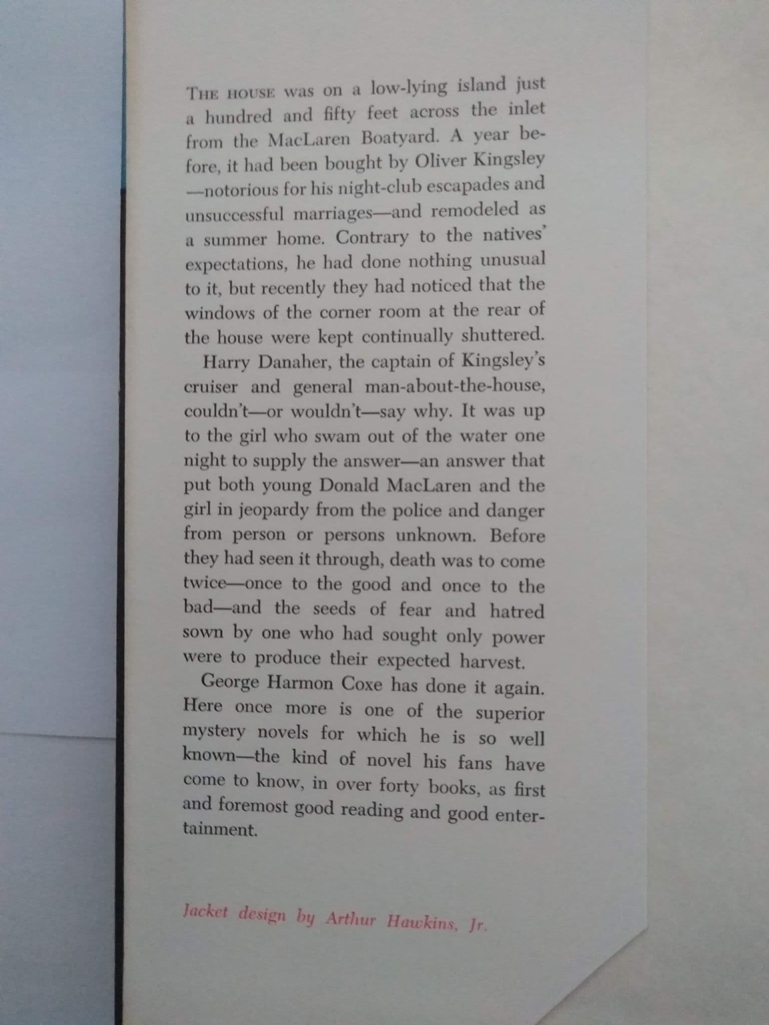 CONDITION MODERATE, CHIPS, TEARS & CREASES ON DUST JACKETAUTHOR GEORGE HARMON COXECATEGORY CRIMEPUBLICATION ALFRED A KNOPF 1ST EDITION 1959.SYNOPSIS
