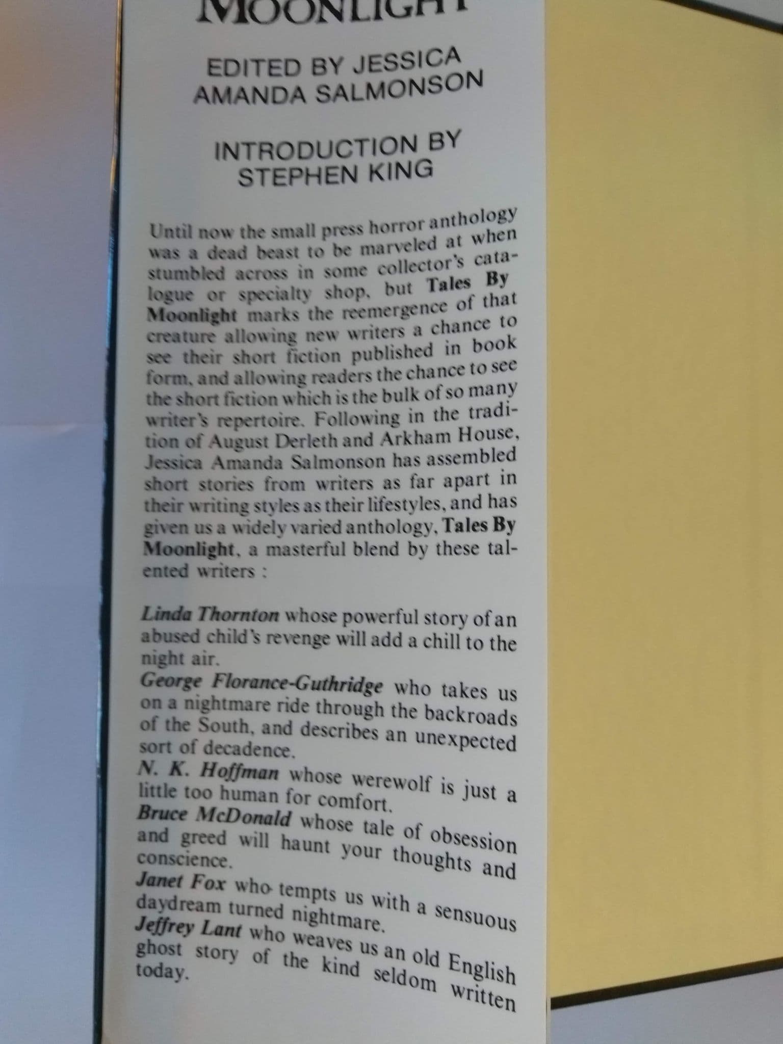 "TALES BY MOONLIGHT" ALLOWS NEW WRITERS A CHANCE TO SEE THEIR SHORT FICTION STORIES PUBLISHED IN BOOK FORM.