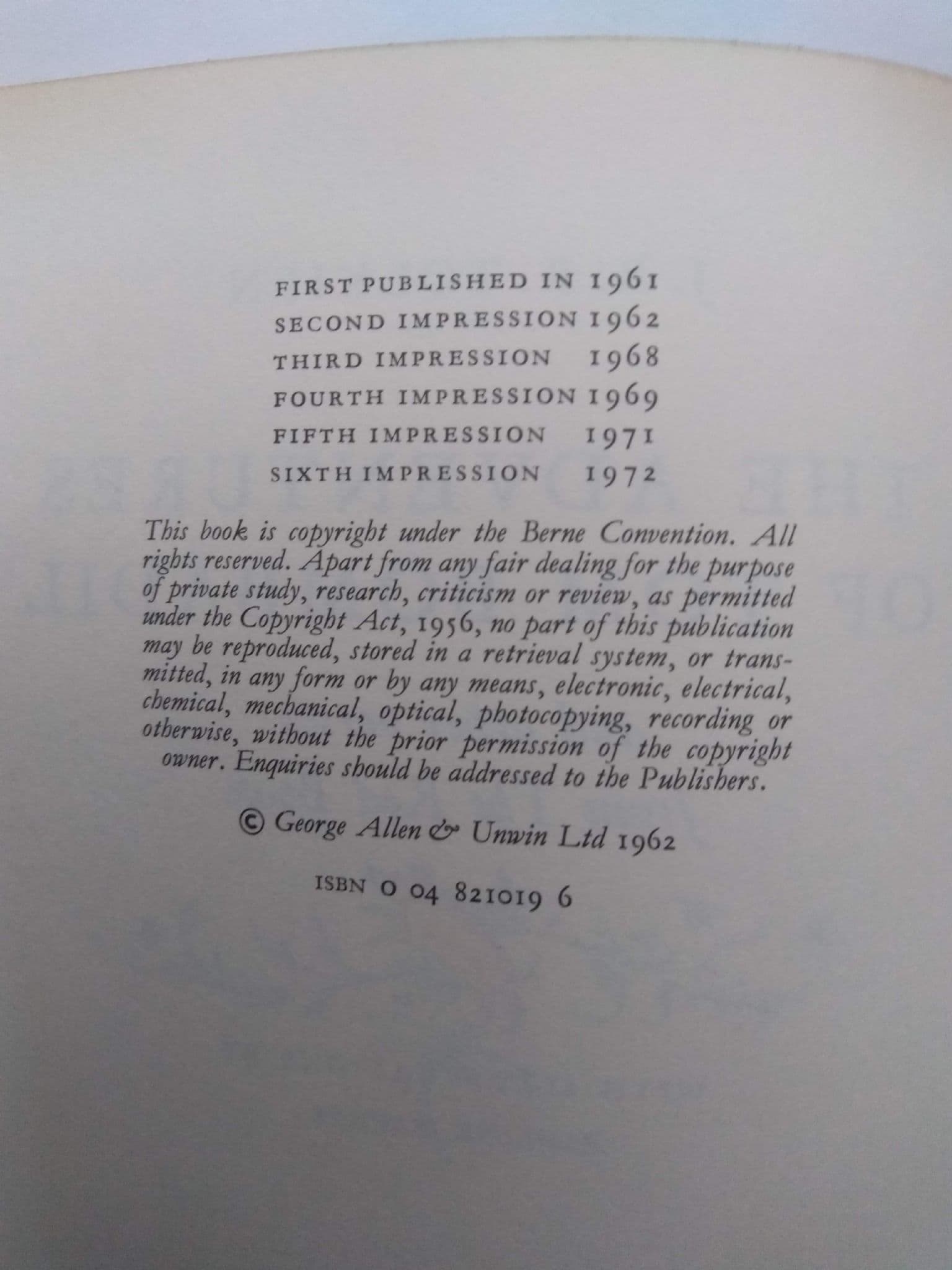 PUBLISHER A GEORGE ALLEN & UNWIN PUBLICATION. 6TH IMPRESSION. 1972