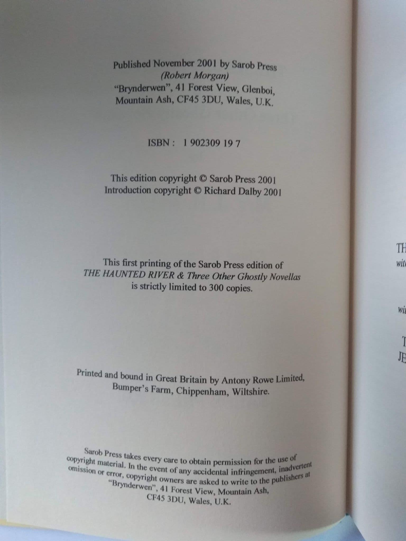 PUBLISHER A SAROB PRESS PUBLICATION 2001. LIMITED TO 300 COPIES.