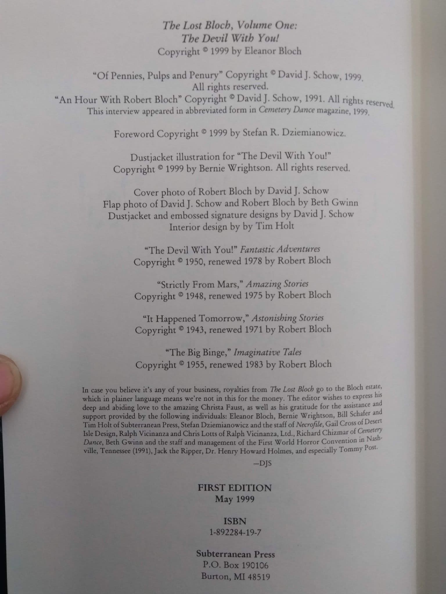THE LOST BLOCH VOL 1 Edited by David J SCHOW (Signed Limited Edition (Hardcover)