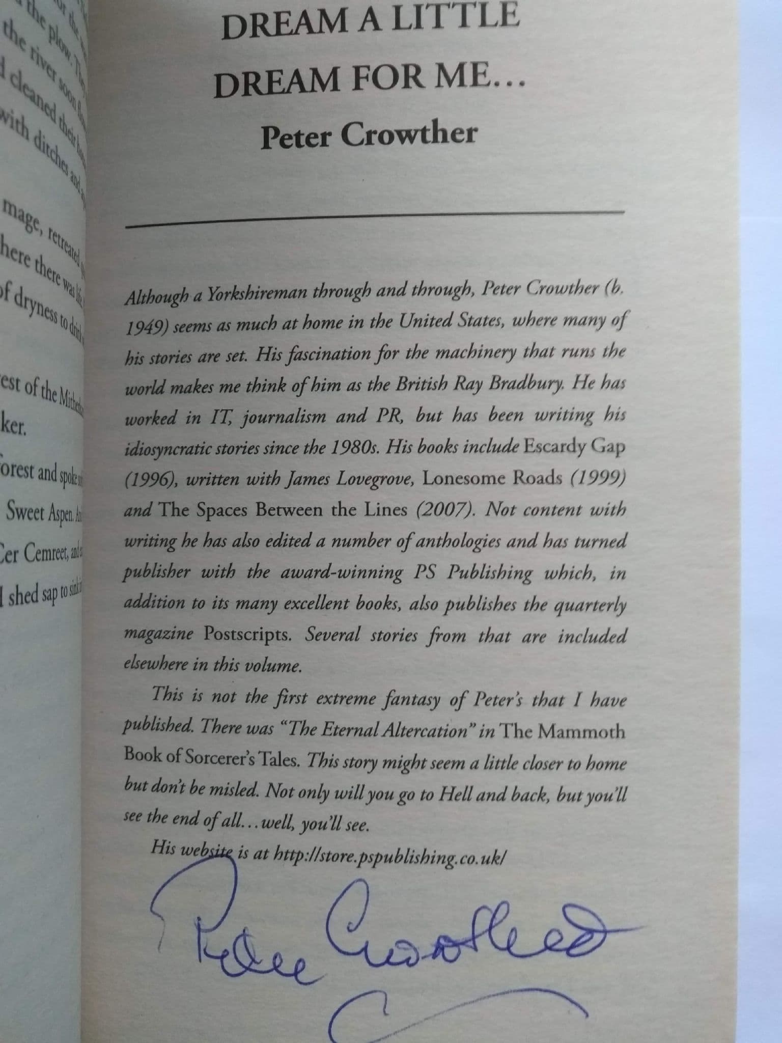 PUBLISHER A ROBINSON PUBLICATION 2008. SIGNED BY PETER CROWTHER ON THE TITLE PAGE OF HIS STORY.