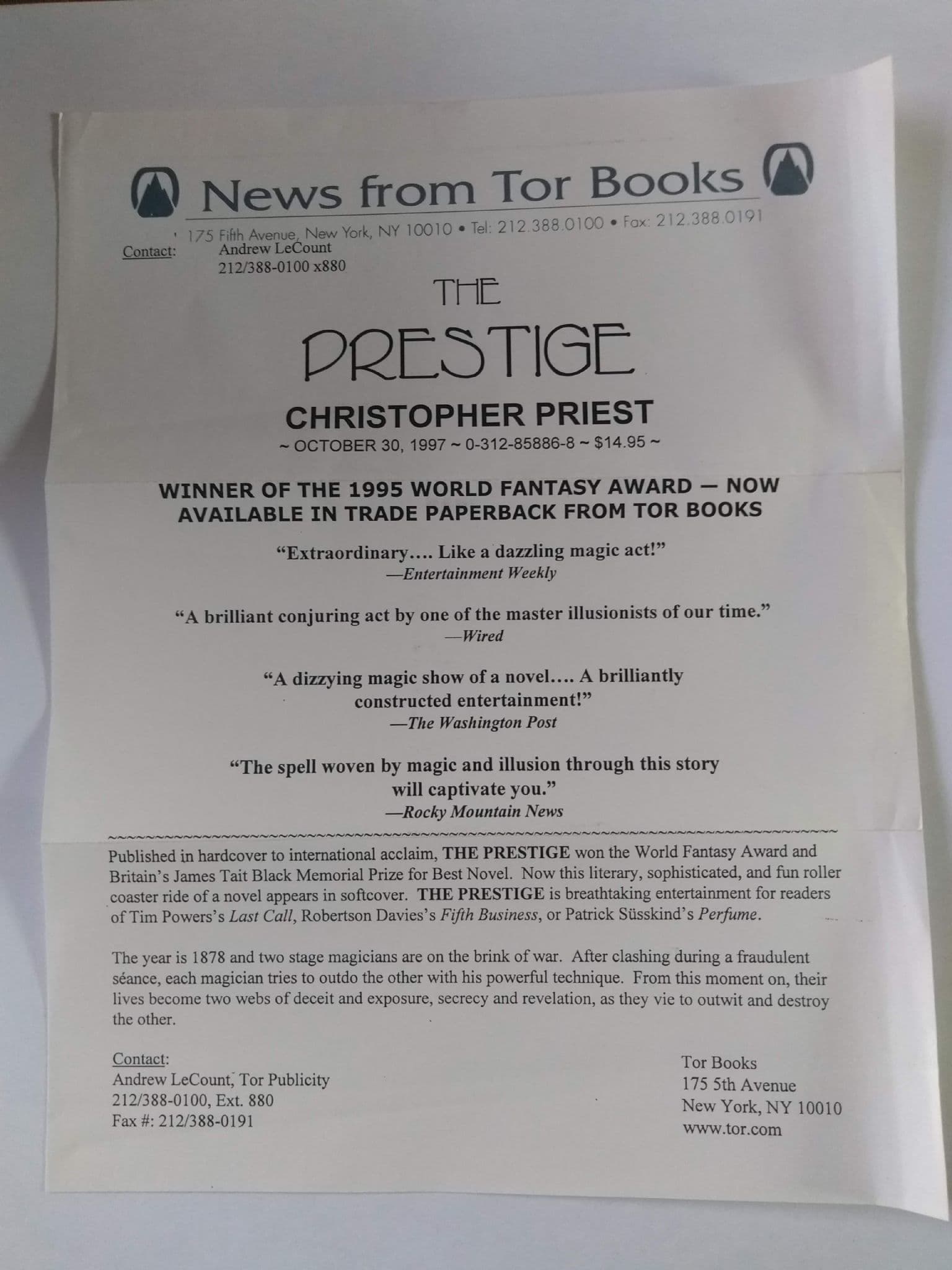 PUBLISHER A TOM DOHERTY ASSOCIATION PUBLICATION 1997.