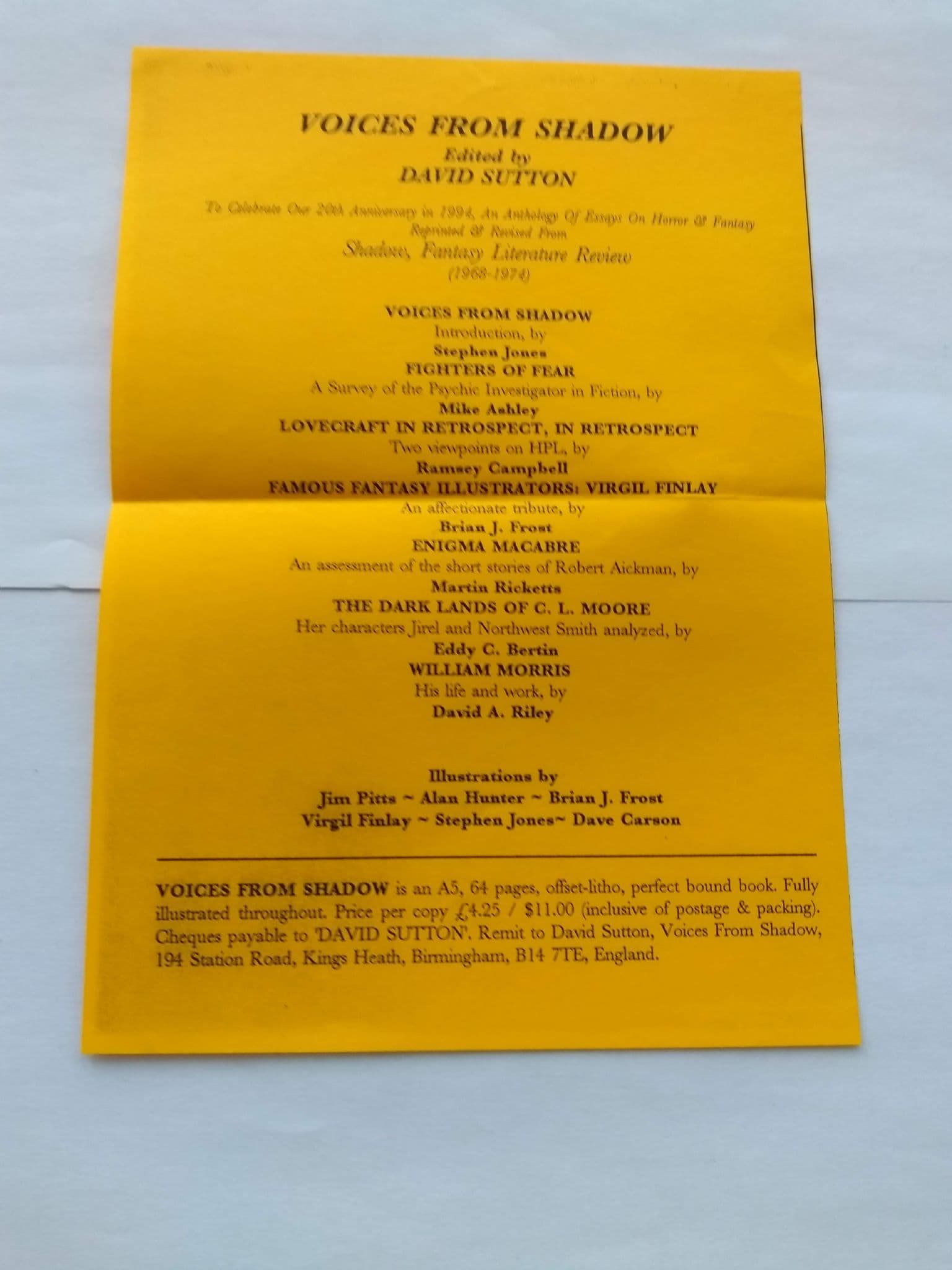 VOICES FROM SHADOW Edited by David SUTTON (Paperback) RARE