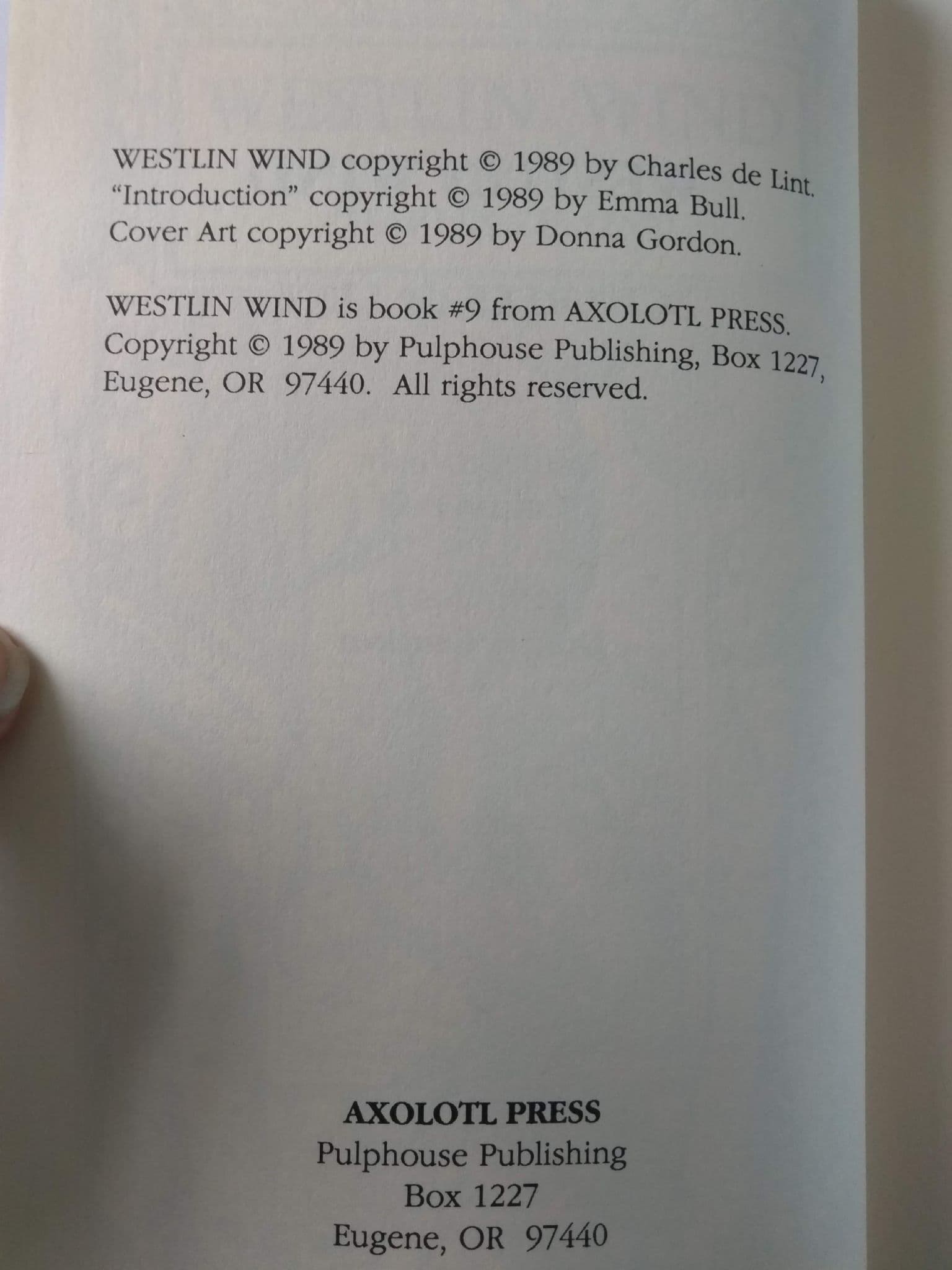PUBLISHER AN AXOLOTL PRESS PUBLICATION. 1989. SIGNED BY ANNA BELL & CHARLES DE LINT. 1 OF 500 TRADE COPIES SIGNED BUT NOT NUMBERED.