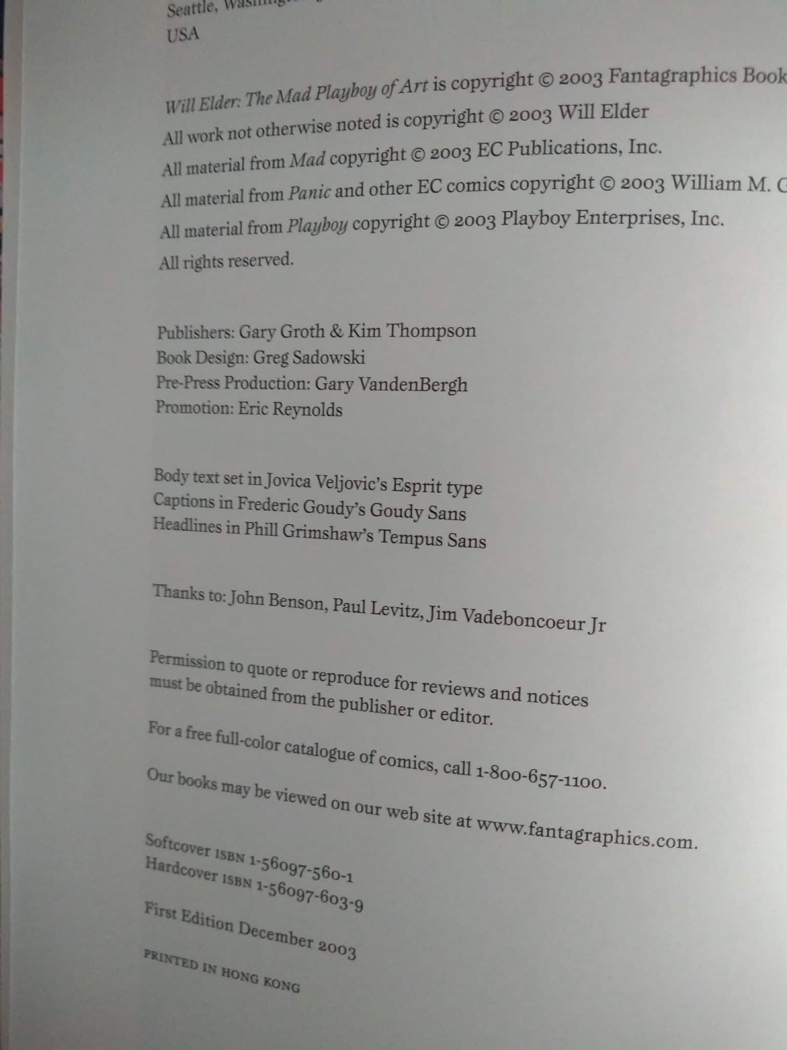 PUBLICATION A FANTAGRAPHICS PUBLICATION. 1ST EDITION 2003. SIGNED BY WILL ELDER. NO 81/1000
