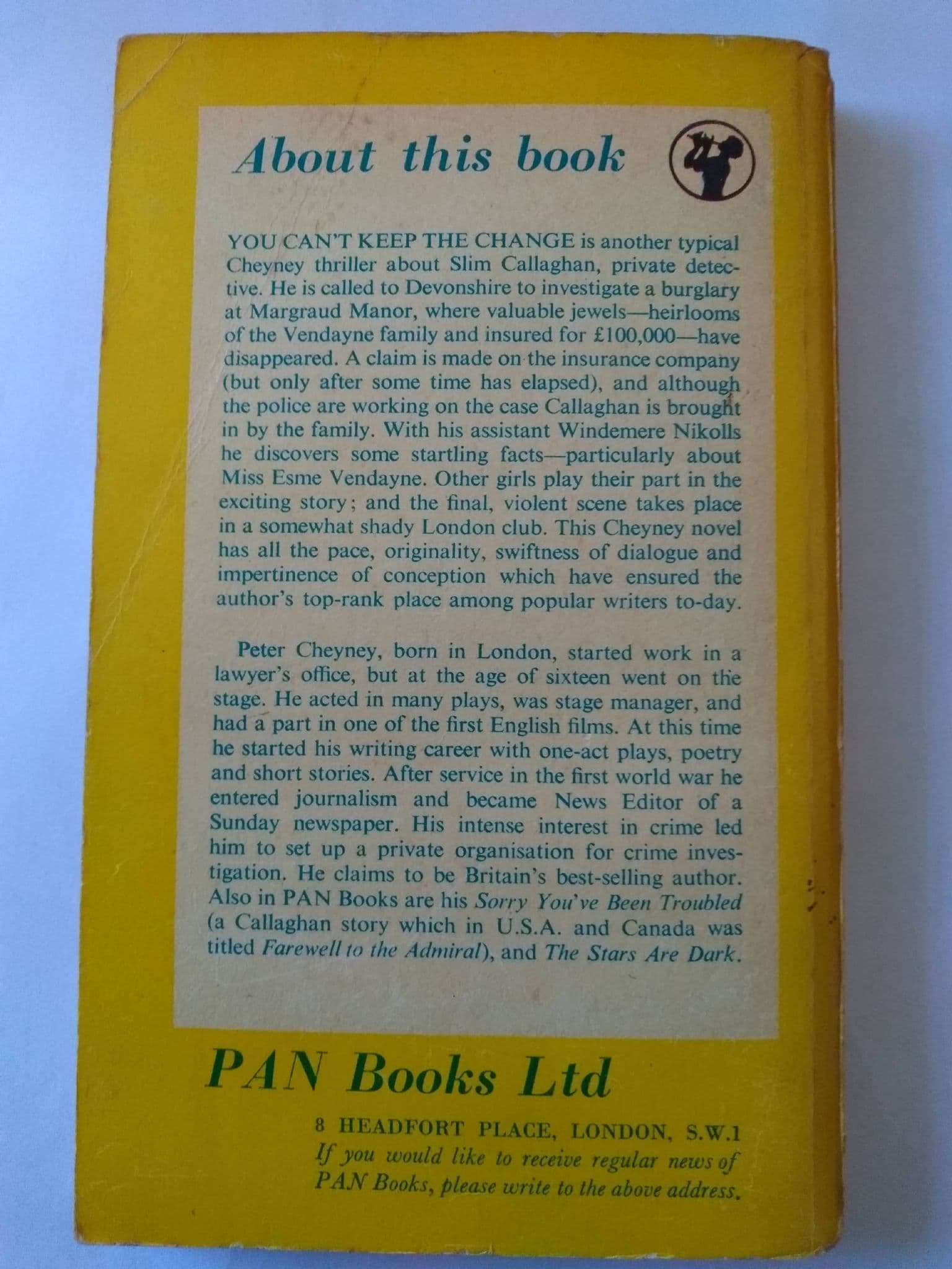 YOU CAN'T KEEP THE CHANGE by Peter Cheyney (No.172) (Paperback)